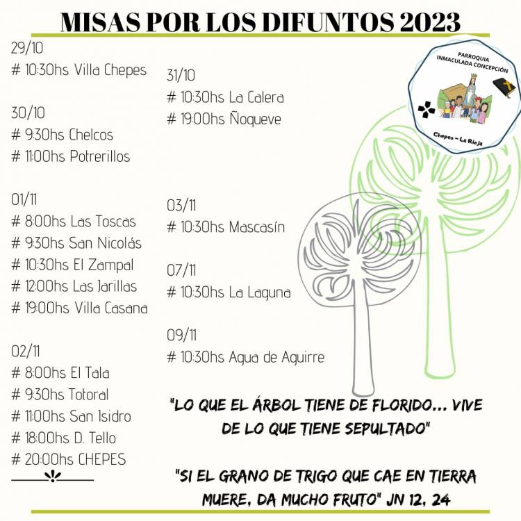 Cronograma de Misas Día de los Fieles Difuntos, a realizarse en el cementerio de cada localidad